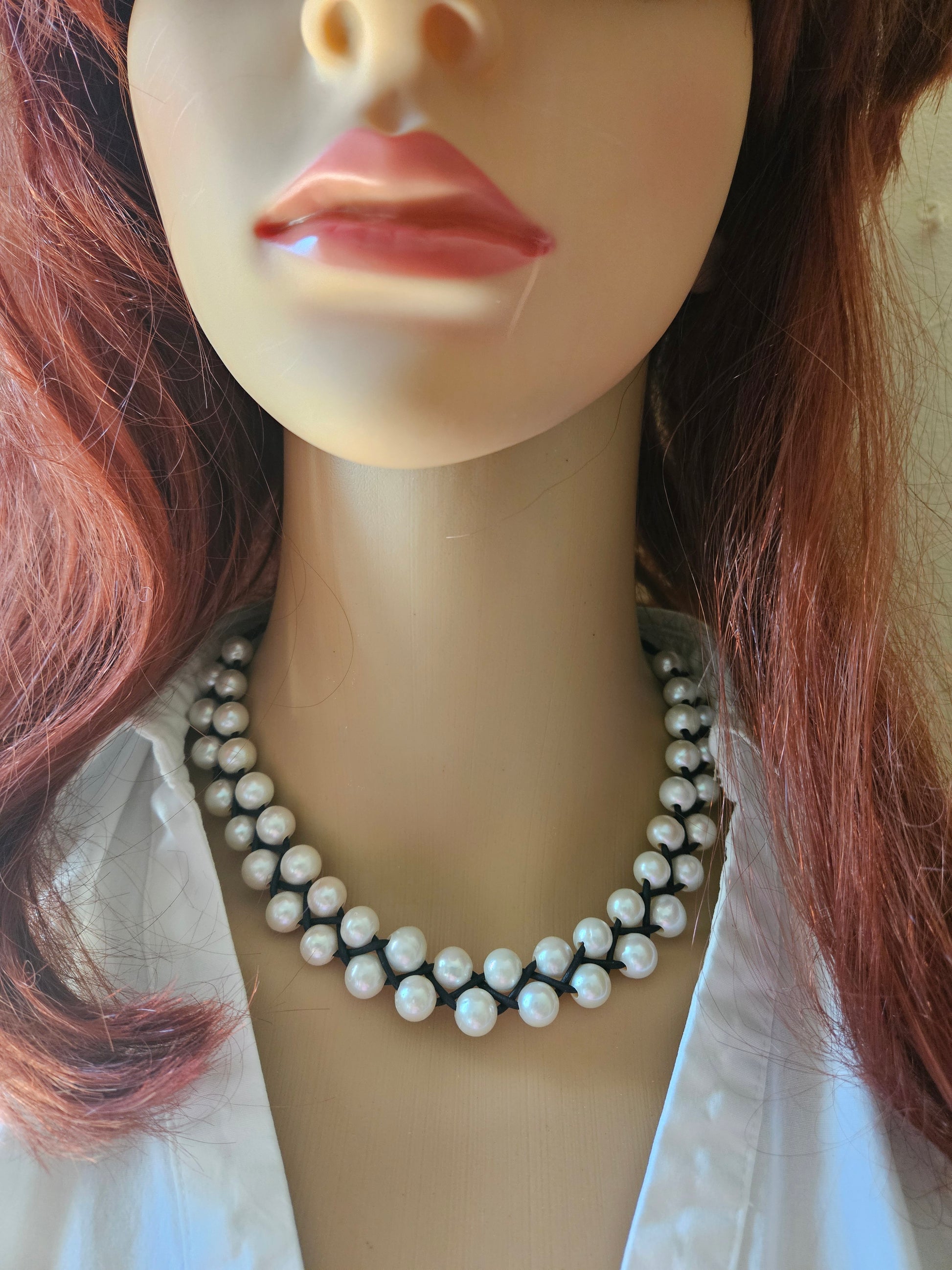 8-9 mm white Freshwater Pearls braided into an Elegant Choker Style Necklace