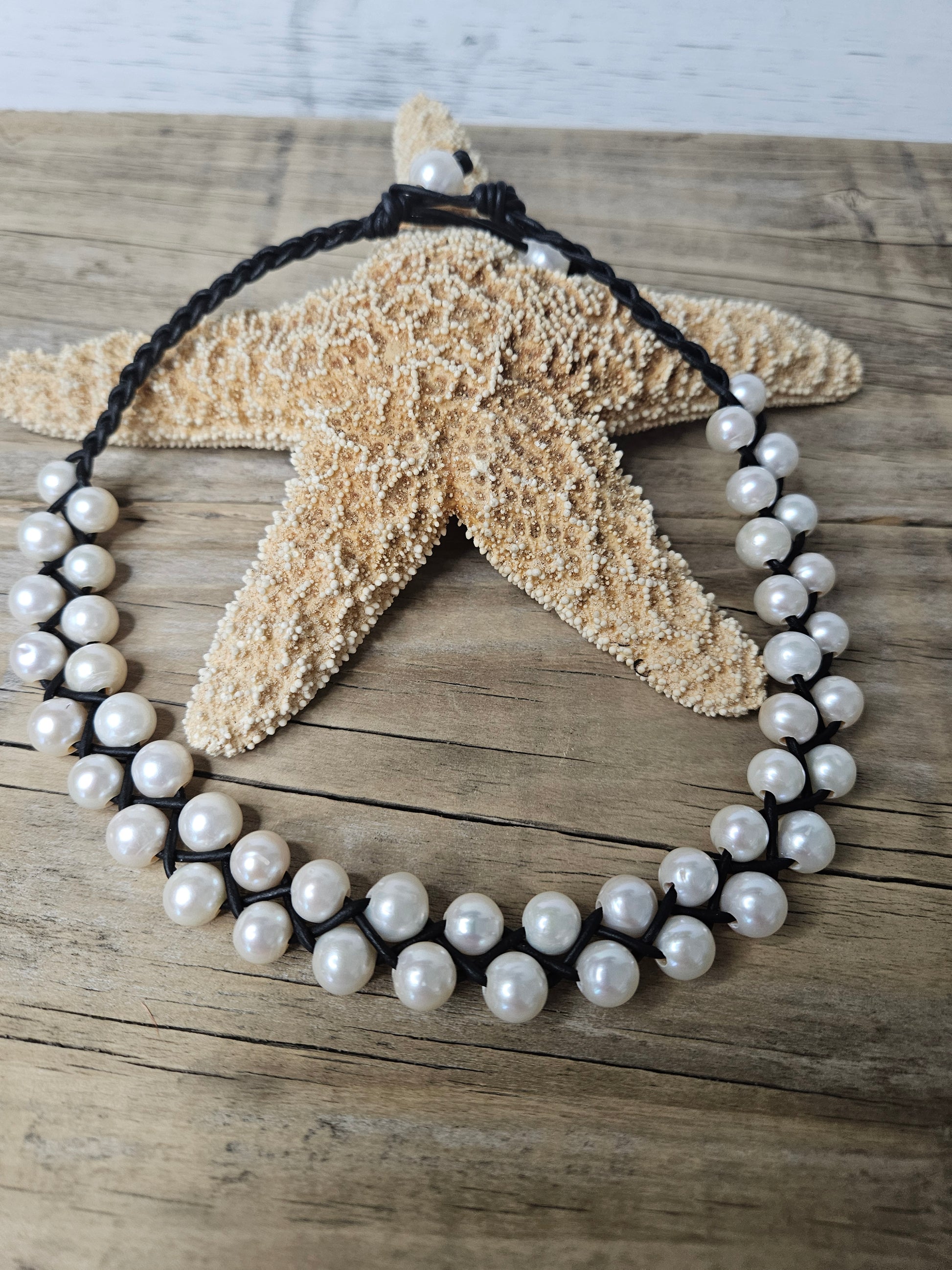 8-9 mm white Freshwater Pearls braided into an Elegant Choker Style Necklace